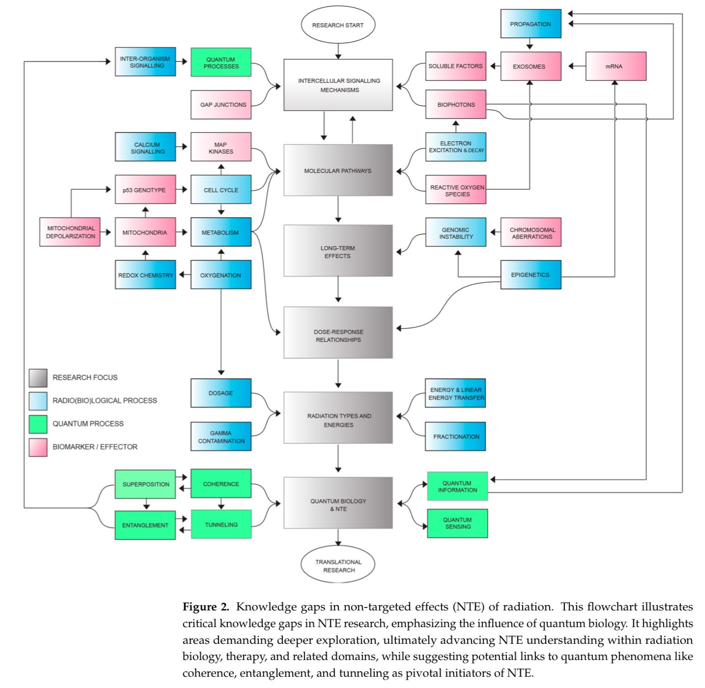 Matarèse, B. F. E., Rusin, A., Seymour, C., & Mothersill, C. (2023). Quantum Biology and the Potential Role of Entanglement and Tunneling in Non-Targeted Effects of Ionizing Radiation: A Review and Proposed Model. International journal of molecular sciences, 24(22), 16464. https://doi.org/10.3390/ijms242216464