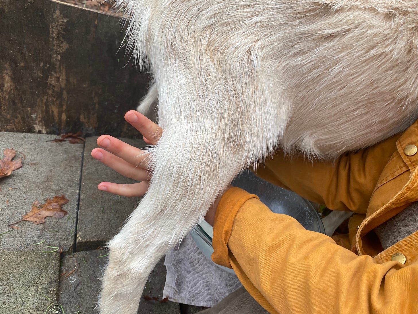 My first raw dairy girl, an Alpine-Nigerian Dwarf cross goat.