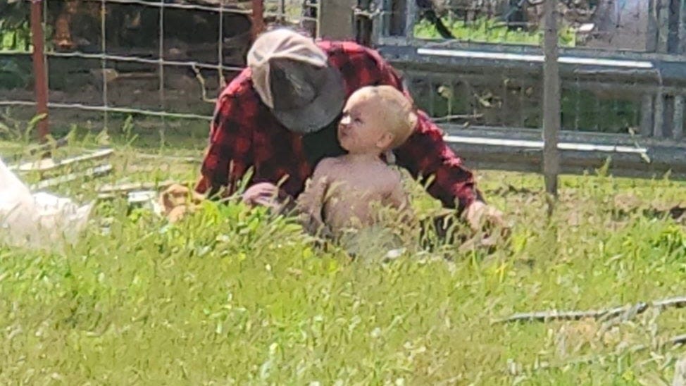 Tanning. Knowing the benefits of sunlight and melanin, I am deliberately doing sun exposure for the kids and me. This is part of why I think getting involved in food production and harvesting is the most “quantum” hobby you can have. We all get out in early morning—perfect to check on the bunnies and chicks, and let the big chickens and ducks out—then come back for breakfast, then go back out again for mid-morning sun, then come back in to escape the heat, then go back out for water play... and so on. I got everyone cotton tank tops and shorts and earthing shoes, and encourage water play to make mud and increase the rate of electron transfer. Here’s my old post about building a solar callus if you are new to this idea or looking for ideas.