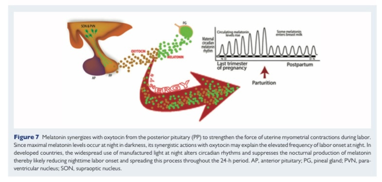 Once the dark sets in, serotonin circulation turns into melatonin circulation. Melatonin causes stronger contractions that feel less painful—amazing, right?